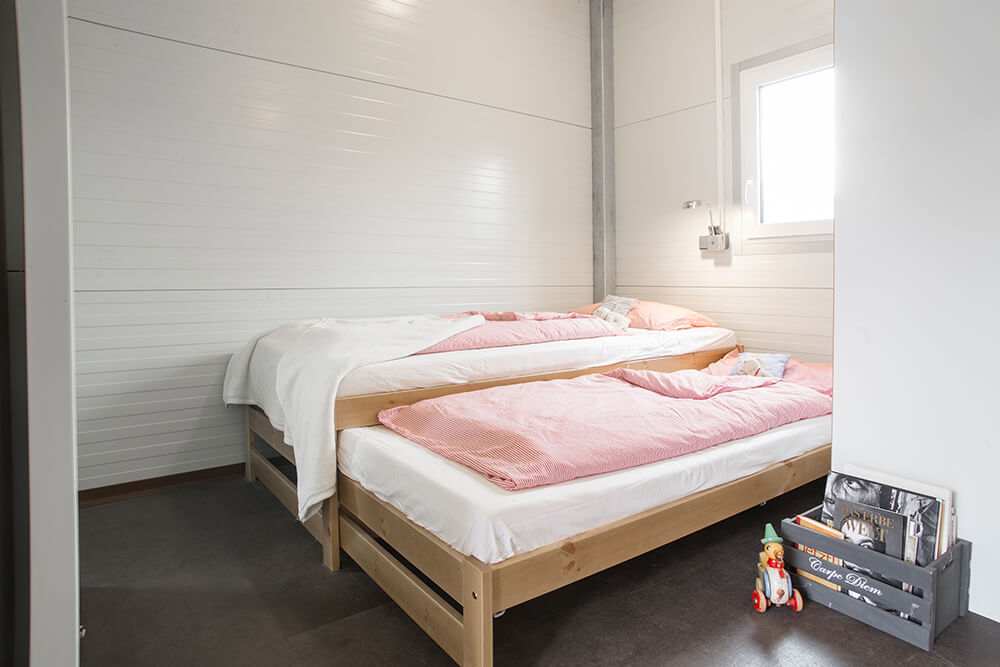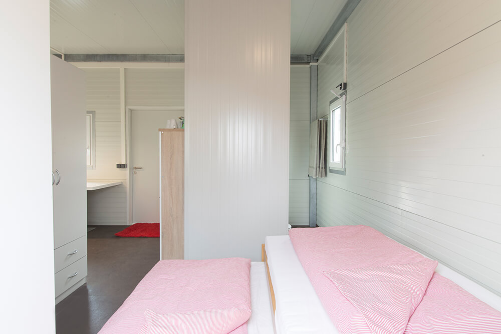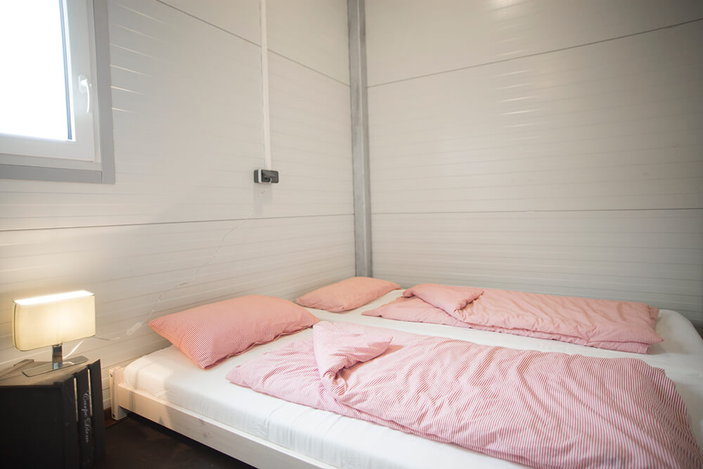 L’espace sommeil dans le conteneur résidentiel a été conçu pour accueillir 4 personnes dans 2 espaces sommeil séparés.
