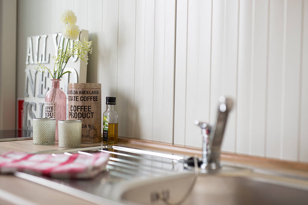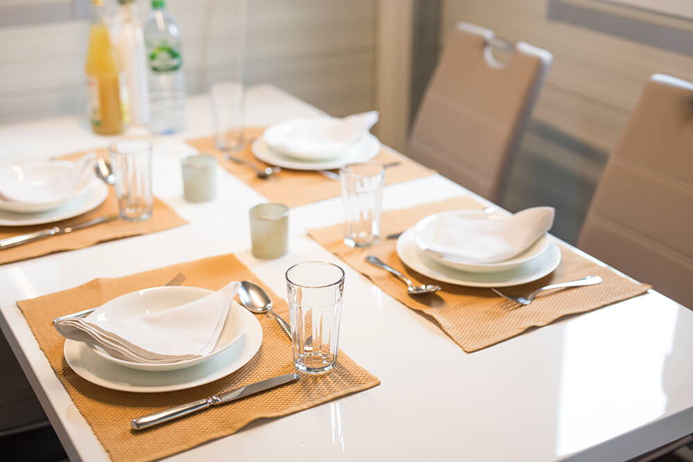 En option: Vous pouvez choisir d’avoir le coin cuisine équipé d’accessoires de cuisine standard plus de la vaisselle pour 4.