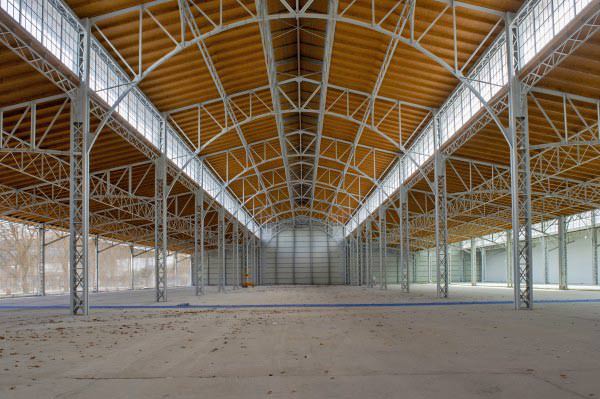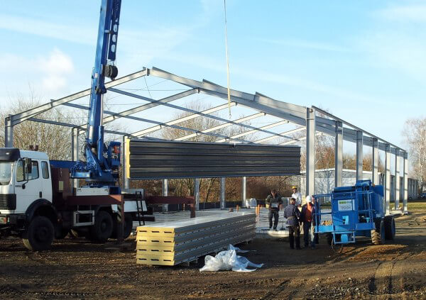 Halle réalisée avec couverture et bardage en panneaux sandwich