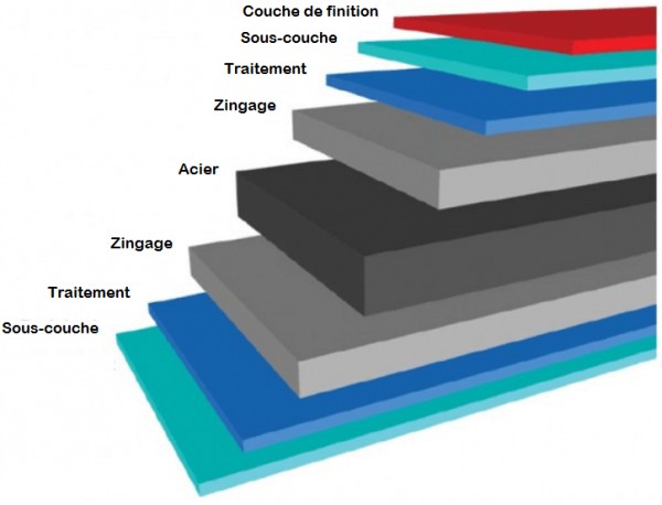 Tôle acier | Cette solution est la protection la plus couramment utilisée. L'acier lui confére une grande stabilité mécanique. Contre la corrosion, ces éléments sont laqués d'un vernis de protection. |