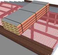 Il convient également de noter que les paquets doivent être fixés avec au minimum 2 sangles transversales, écartées au plus d'un mètre du bord et avec une distance entre sangle maximale de 3 m. Lors du sanglage veuillez à ne pas serrer trop fort et ainsi déformer les panneaux! La zone de chargement du véhicule de transport devra, bien sûr, être vide de tout objet et baché face aux intempéries.